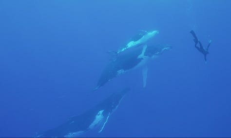 I know this because I came eye to eye with a humpback whale and her calf in open water, swam amongst a shiver of sharks1 and was surprised by an enormous manta ray off the Australian coast.